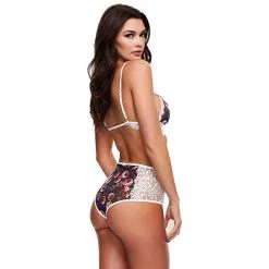 Baci Grey Floral & Lace Bra Ensemble Lingerie Sexy 2 Pieces