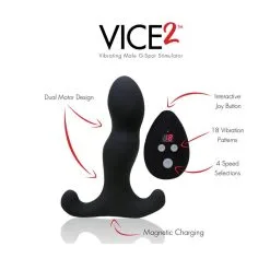 Le VICE 2 comprend une tĂ©lĂ©commande sans fil sophistiquĂ©e pour un contrĂ´le total de toutes les fonctionnalitĂ©s de l’appareil, y compris; 18 modèles de vibrations prĂ©dĂ©finis, sĂ©lection de 4 vitesses et un bouton Joy pour une commande interactive de l’intensitĂ© des vibrations.