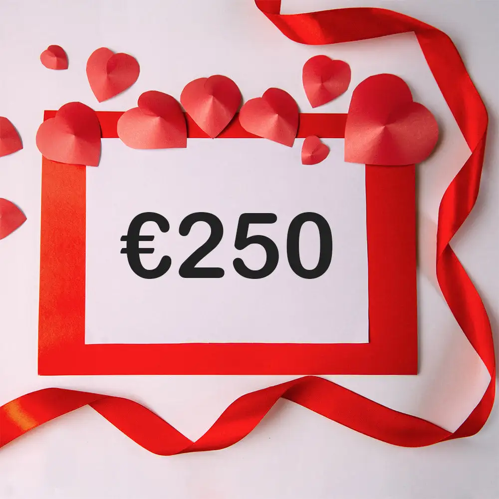 | Valeur | €25.00, €50.00, €100.00, €150.00, €250.00 |