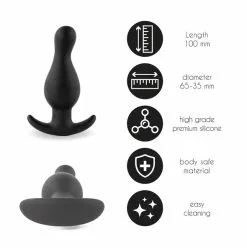 Plugz Noir no. 2 a une forme mince en haut et se dilate progressivement pour une insertion facile jusqu’Ă la base. La lĂ©gère courbe sur le dessus offre une excitation supplĂ©mentaire tout en bougeant vos hanches pendant les jeux d’amour.