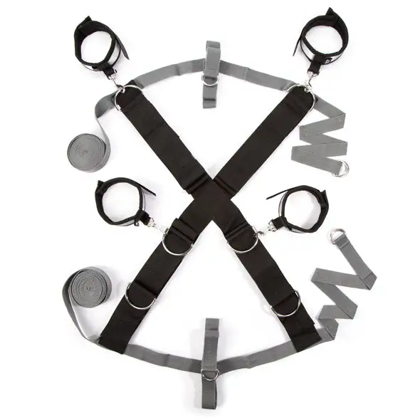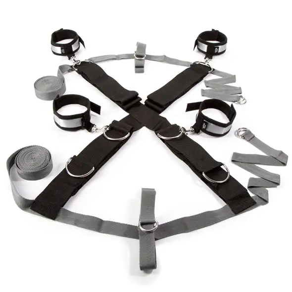 Fait partie des Cinquante Nuances de Gris La Collection Plaisir Officielle approuvĂ©e par l’auteur E L James. Fourni avec un bandeau et un accroche-porte de marque Fifty Shades of Grey, cet ensemble de retenue de lit a tout ce dont vous avez besoin pour un jeu de bondage passionnant dans la chambre.