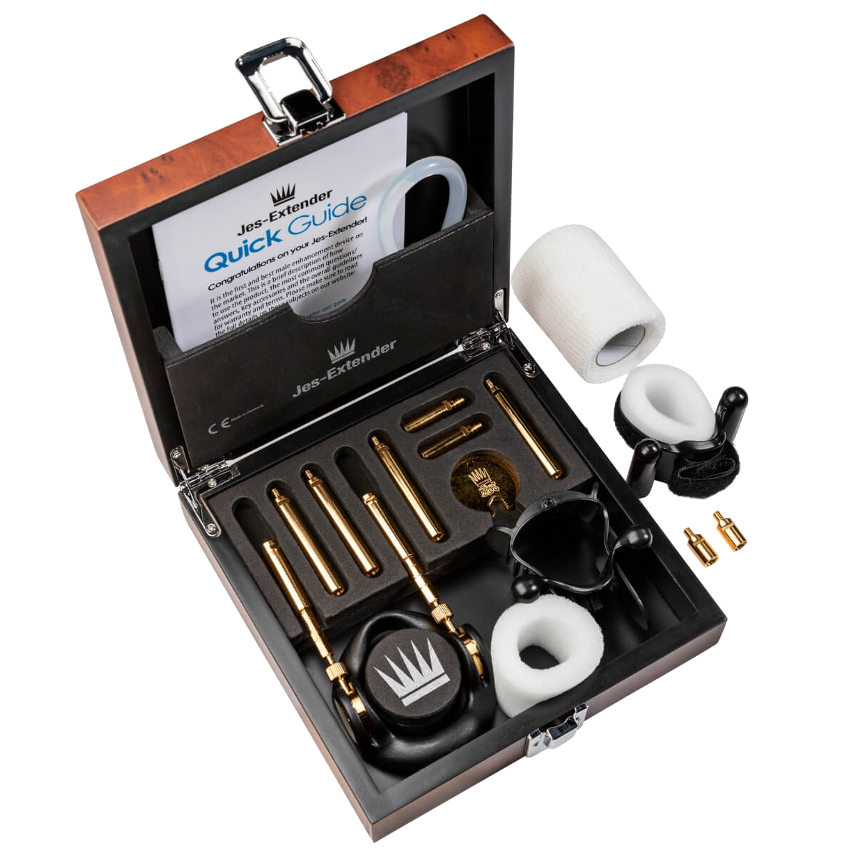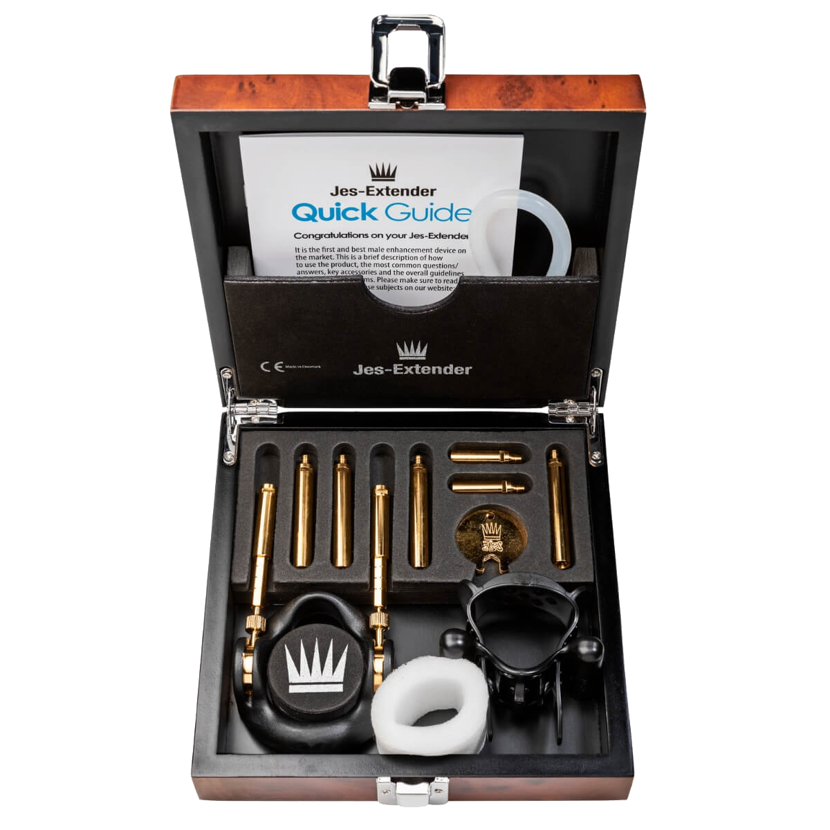 FabriquĂ© en or 24 carats, le Jes Extender Gold est l’un des agrandisseurs de pĂ©nis de la plus haute qualitĂ© disponible. Les accessoires comprennent une sangle de confort sur le devant, un jeu de clĂ©s, une gaze cohĂ©sive, une sangle velcro et l’accès Ă une vidĂ©o pĂ©dagogique en ligne. Le Jes-Extender Gold bĂ©nĂ©ficie d’une garantie de 2 ans.