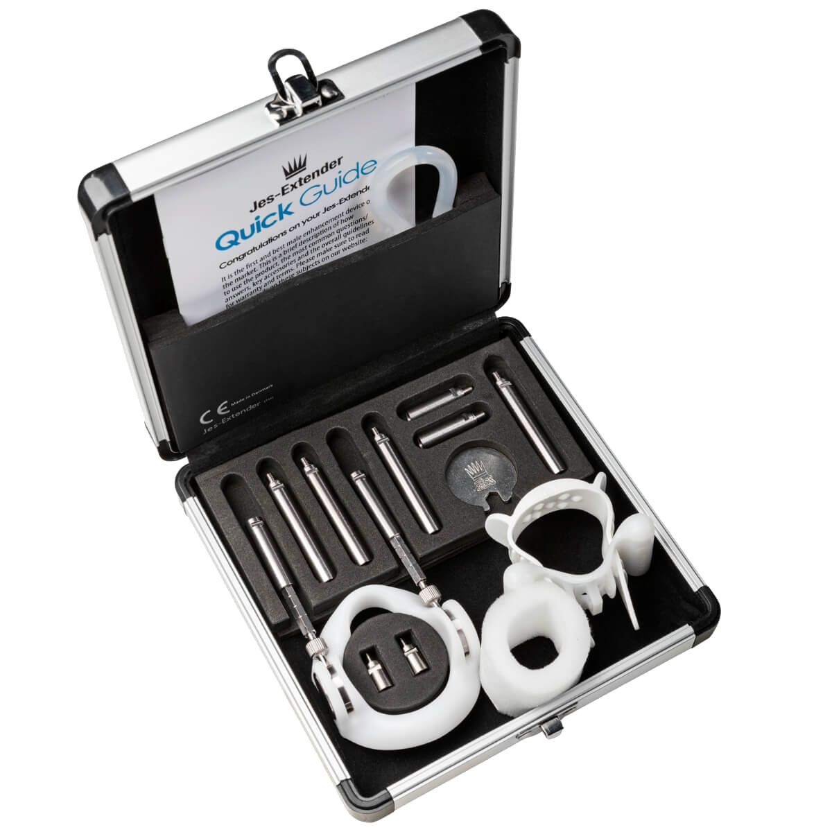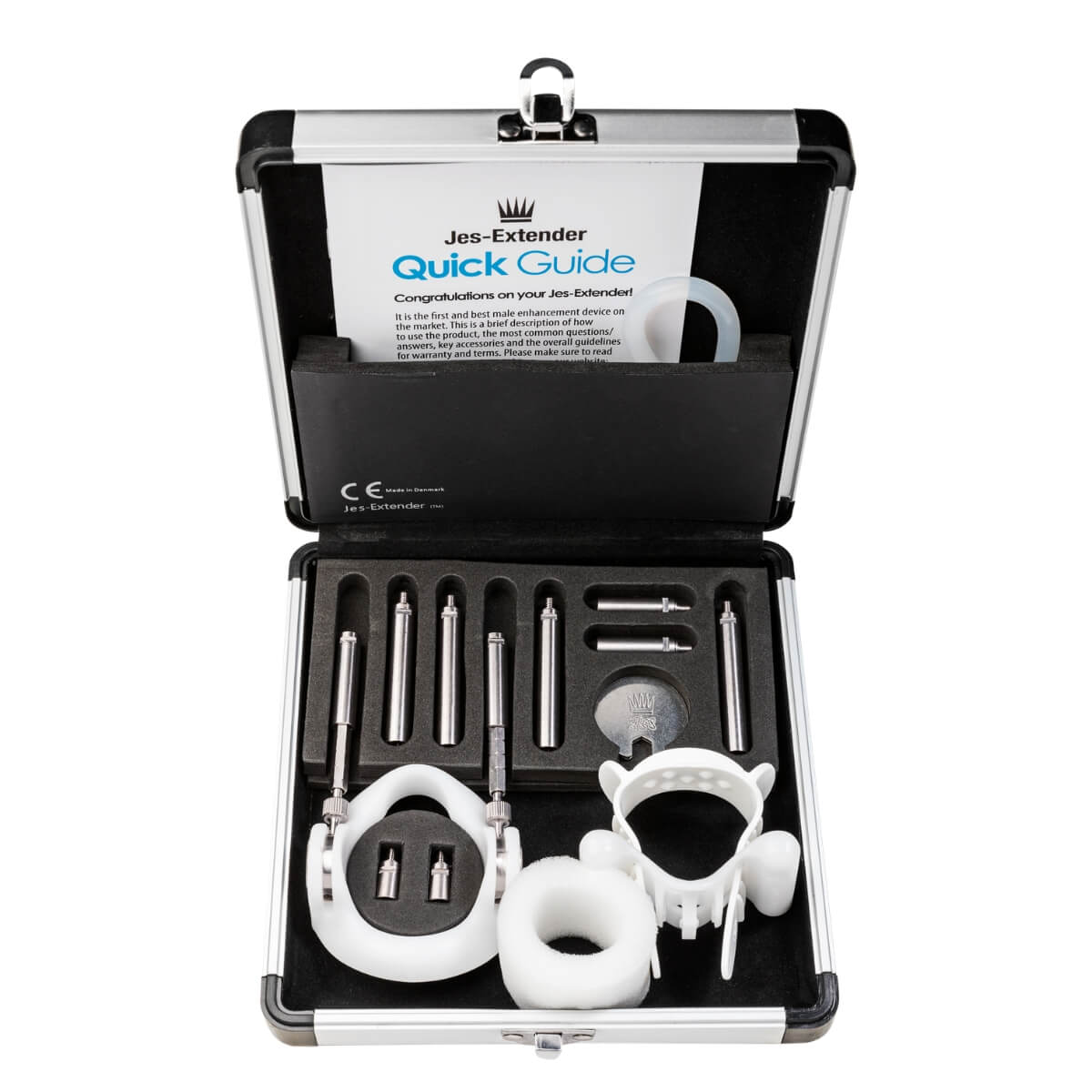 Ce produit est livrĂ© dans un flight case en aluminium Ă©lĂ©gant, vous pouvez donc poursuivre votre programme d’extension en dĂ©placement. Il est livrĂ© avec un ensemble supplĂ©mentaire de barres d’allongement de ½ pouce pour une surveillance ultra prĂ©cise de la croissance, des sangles de confort avant, un jeu de clĂ©s, un accès Ă une vidĂ©o pĂ©dagogique en ligne et une garantie de 2 ans. Convient aux tailles de pĂ©nis jusqu’Ă 24 cm (9,1 pouces).