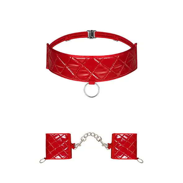 – Menottes rouges et un sĂ©duisant tour de cou inclus