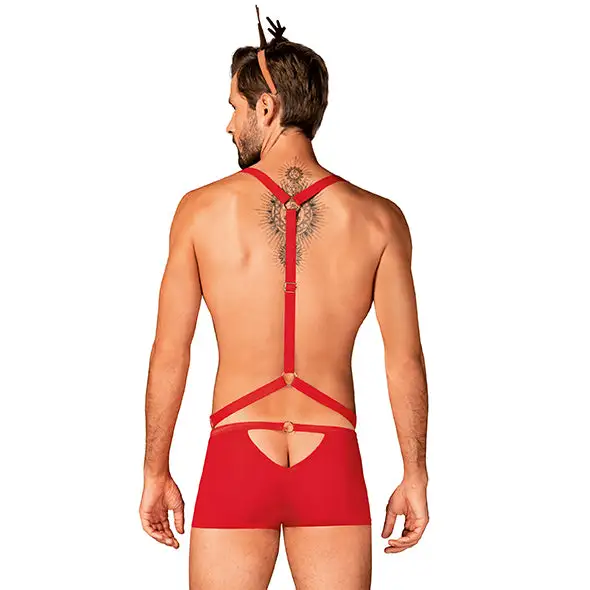 Le Obsessive Mister Reindy Ensemble est d’humeur Ă s’amuser ! Le harnais rouge impertinent et la culotte sĂ©duisante forment une paire très sexy et sensuelle, prĂŞte Ă faire des bĂŞtises dans la chambre.