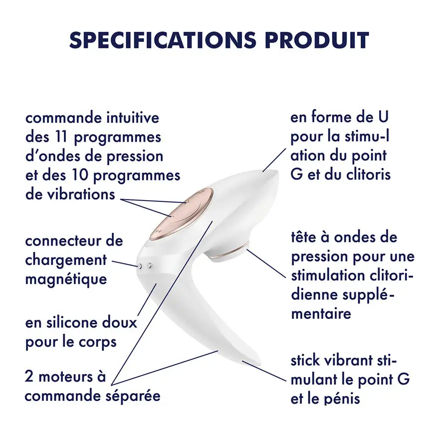 Le Satisfyer Pro 4 Vibromasseur Ă Pression d’air Pour Couples + Vibration avec la technologie Ă air pulsĂ© « Air-Pulse » de Satisfyer au service des Ă©bats amoureux Ă deux. PortĂ© pendant l’acte sexuel, il stimule le clitoris par des ondes de pression, tandis que les deux partenaires bĂ©nĂ©ficient des vibrations du manche en silicone insĂ©rable dans le vagin et destinĂ© Ă stimuler l’orgasme via le point G.