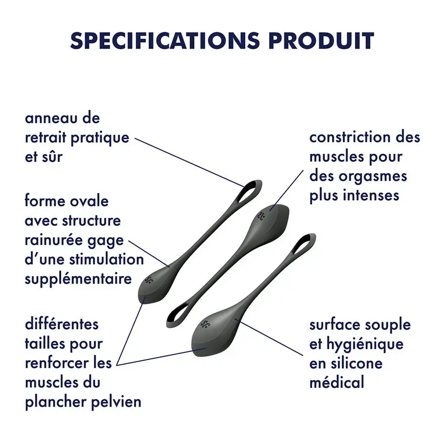 Voulez-vous ressentir des orgasmes époustouflants ? Si oui, vous devez absolument essayer les boules de geisha ! Le set Satisfyer Yoni Power 2 se compose de trois boules de différentes tailles grâce auxquelles vous pouvez entraîner votre plancher pelvien progressivement.