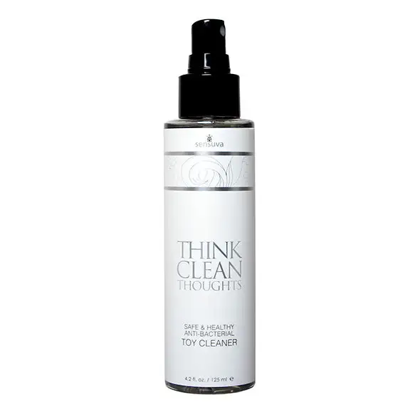 Gardez vos produits de plaisir propres et votre corps en sécurité! Think Clean Thoughts est un spray nettoyant antibactérien rapide et simple à utiliser qui contient des ingrédients antimicrobiens actifs qui ont fait leurs preuves pour tuer 99,9% de tous les germes, et il est suffisamment doux pour ne pas irriter les tissus délicats.