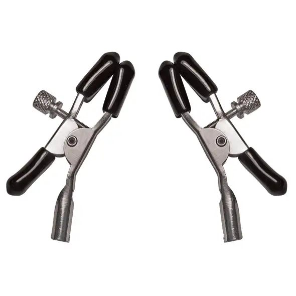 2 pinces de base multi-usage entiĂšrement rĂ©glables pour lui. Coussinets souples pour plus de confort et peuvent ĂȘtre retirĂ©s. Les rĂ©glages de tension les rendent parfaits pour la stimulation des mamelons ainsi que pour de nombreuses autres zones sensibles.