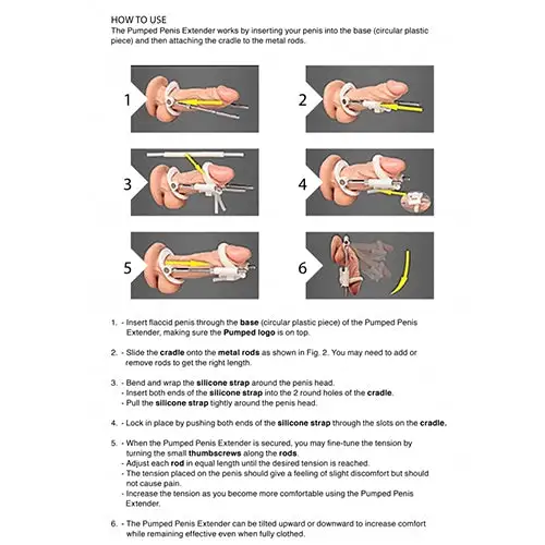 La taille compte ! Obtenez des résultats permanents avec cet extenseur pénien pompé ! Cet extenseur pénien augmente la longueur et la circonférence du pénis par le biais de la trac- tion de ses tiges d’acier à ressort pour aider la capacité na- turelle du corps à évoluer et à se développer sous l’influence physique.
