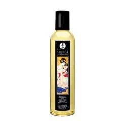 Profitez des plaisirs de donner ou de recevoir un massage sensuel et Ă©rotique en utilisant le mĂ©lange exclusif de Shunga d’huile pressĂ©e Ă froid Ă base d’huile d’amande, d’huile de pĂ©pins de raisin, d’huile de sĂ©same, d’huile d’avocat, de vitamine E, d’huile essentielle d’huile de carthame, d’extraits d’ylang-ylang et yohimbe, et selon le parfum, des extraits d’huiles essentielles de lavande, de roses, de pĂŞchers, de pommiers, d’orangers et de vanille.