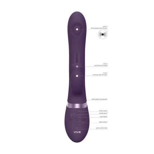 Le Vive Rini Vibromasseur Triple Fun 23 Cm stimule tous vos points sensibles. Grâce à ses trois  moteurs F1 de nouvelle génération à 10 fonctionnalités et sa technologie avancée (les trois moteurs peuvent être contrôlés indépendamment)
